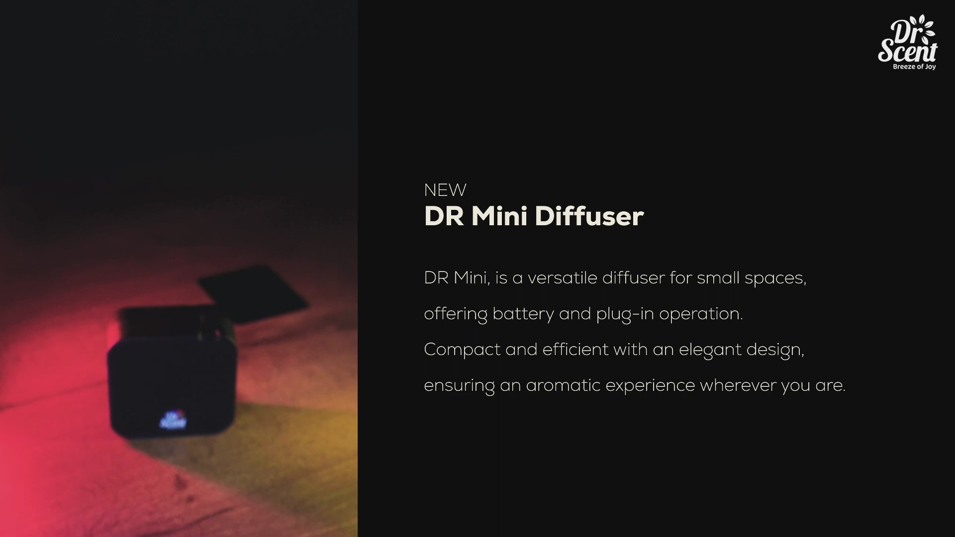 DR Mini, is a versatile diffuser for small spaces, offering battery and plug-in operation. Compact and efficient with an elegant design, ensuring an aromatic experience wherever you are.