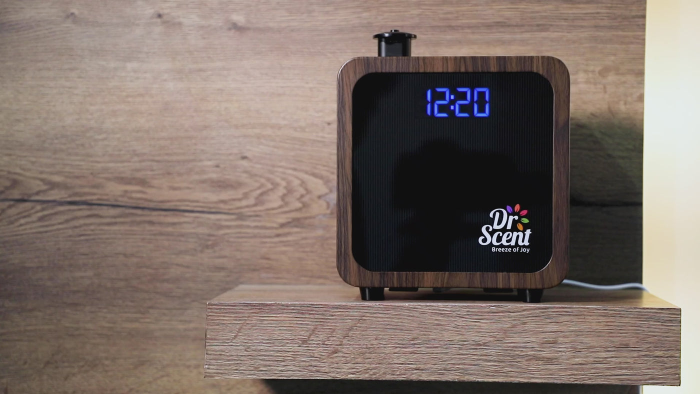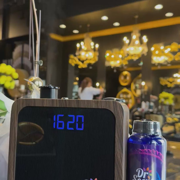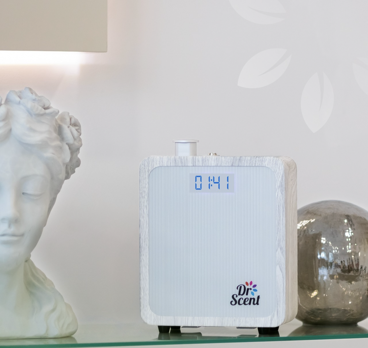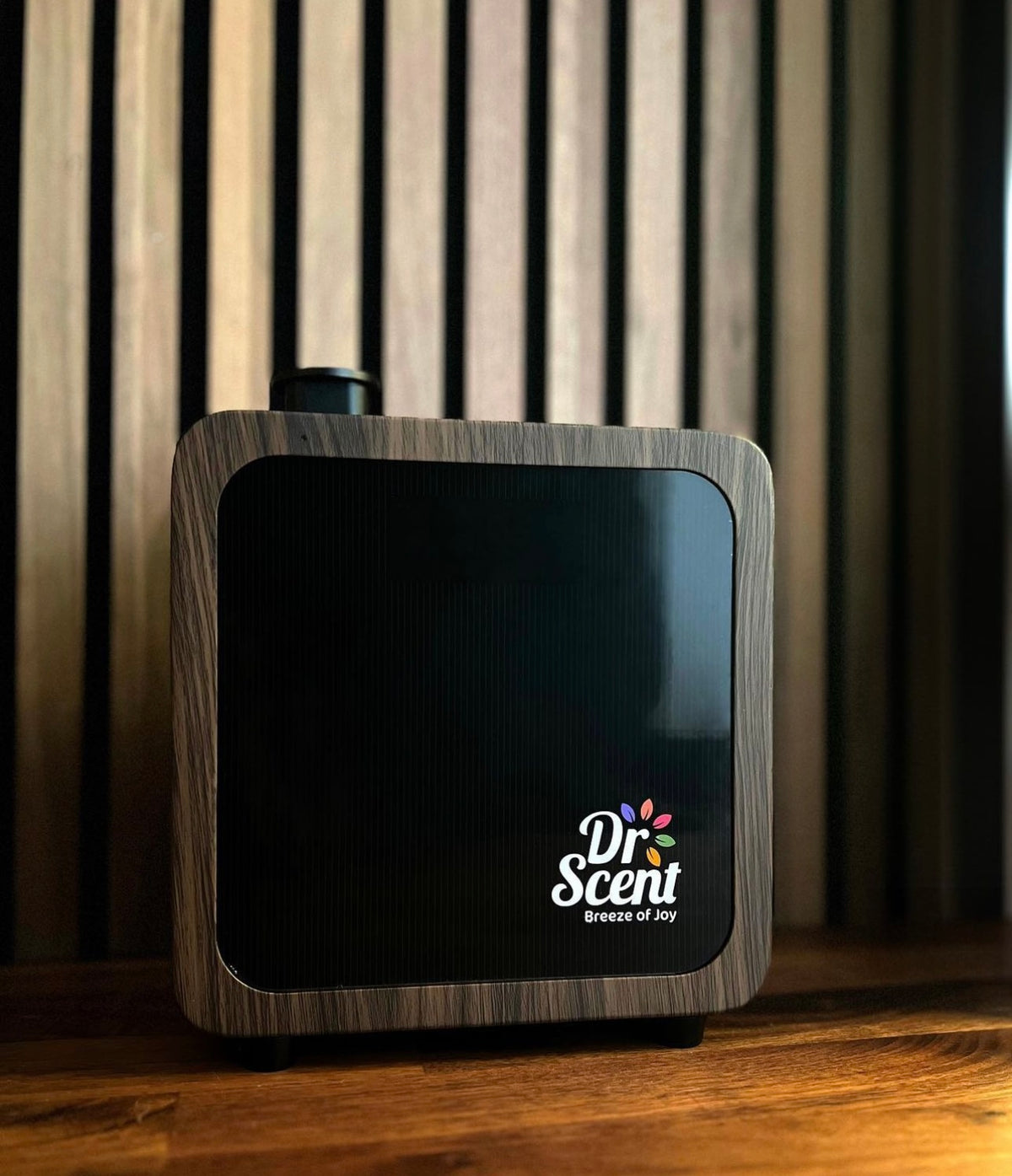 Place the Dr. Scent diffuser on a flat surface or mount it securely in your space.