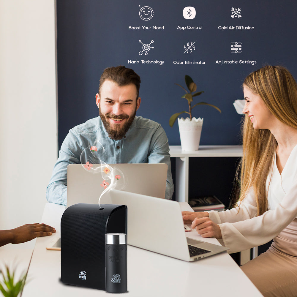 We use nano-technology to create vibrations that turn water and essential oils into a fine mist, dispersing the aroma into the air without using heat.